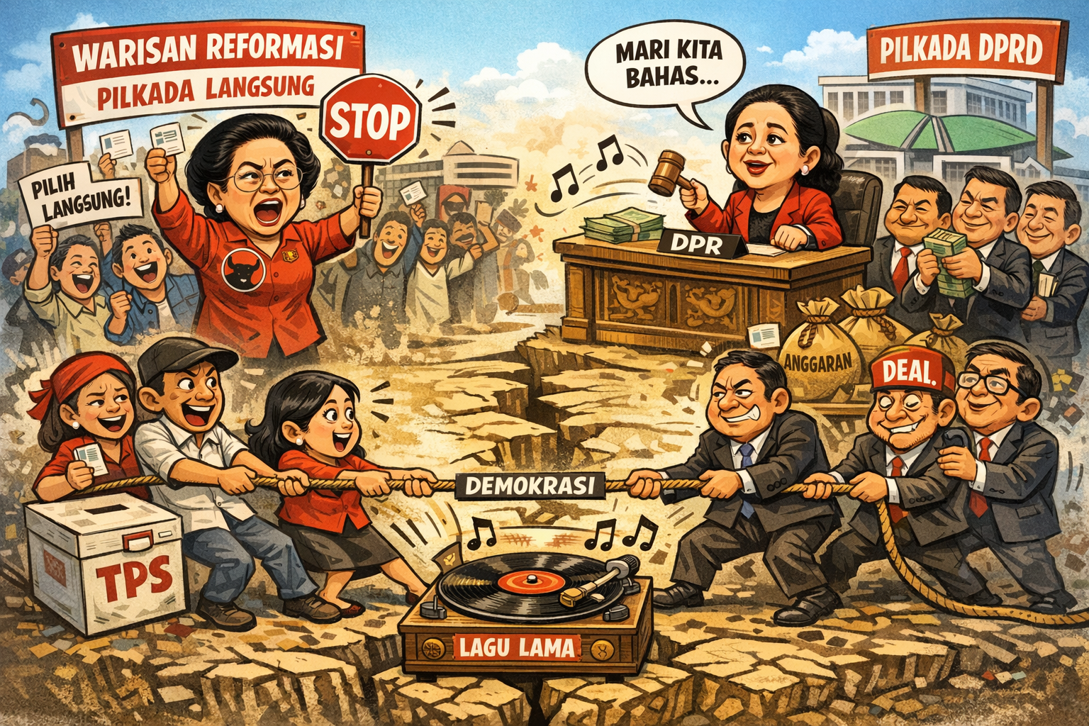Isu pilkada lewat DPRD seperti cerita lama yang dipaksa naik panggung lagi. Mirip sandiwara usang yang pemainnya sudah hafal dialog, penontonnya malah ingin pulang. Dulu pernah dicoba, hasilnya pun sudah kita rasakan bersama: rapat panjang, lobi senyap, dan rakyat cuma kebagian berita hasil akhirnya.