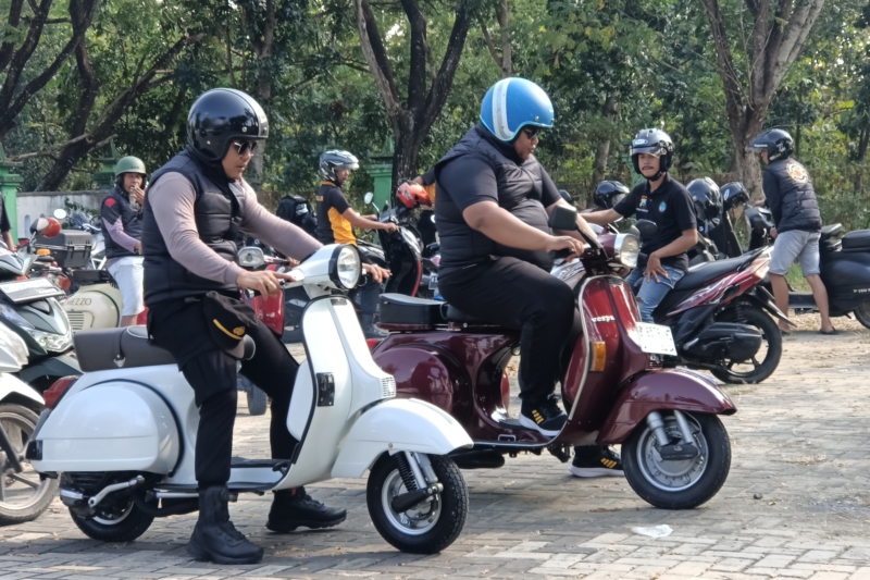 Kapolres AKBP Dani semangat mengaspal bersama gabungan skuter Pamekasan (GSP), sejumlah personil, dan puluhan wartawan.